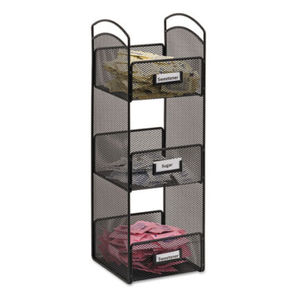 Onyx Breakroom Organizers, 3 Compartments, 6 x 6 x 18, Steel Mesh, Black